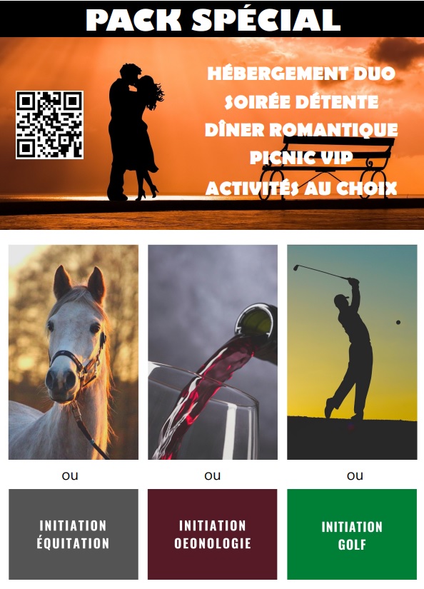 Si vous voulez vivre en duo une expérience qui allie romantisme et aventure, jetez un œil à notre Pack Spécial Duo et choisissez en plus de l’hébergement une activité ludique qui renforcera votre couple !