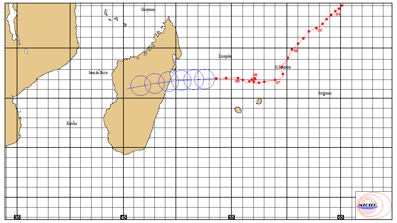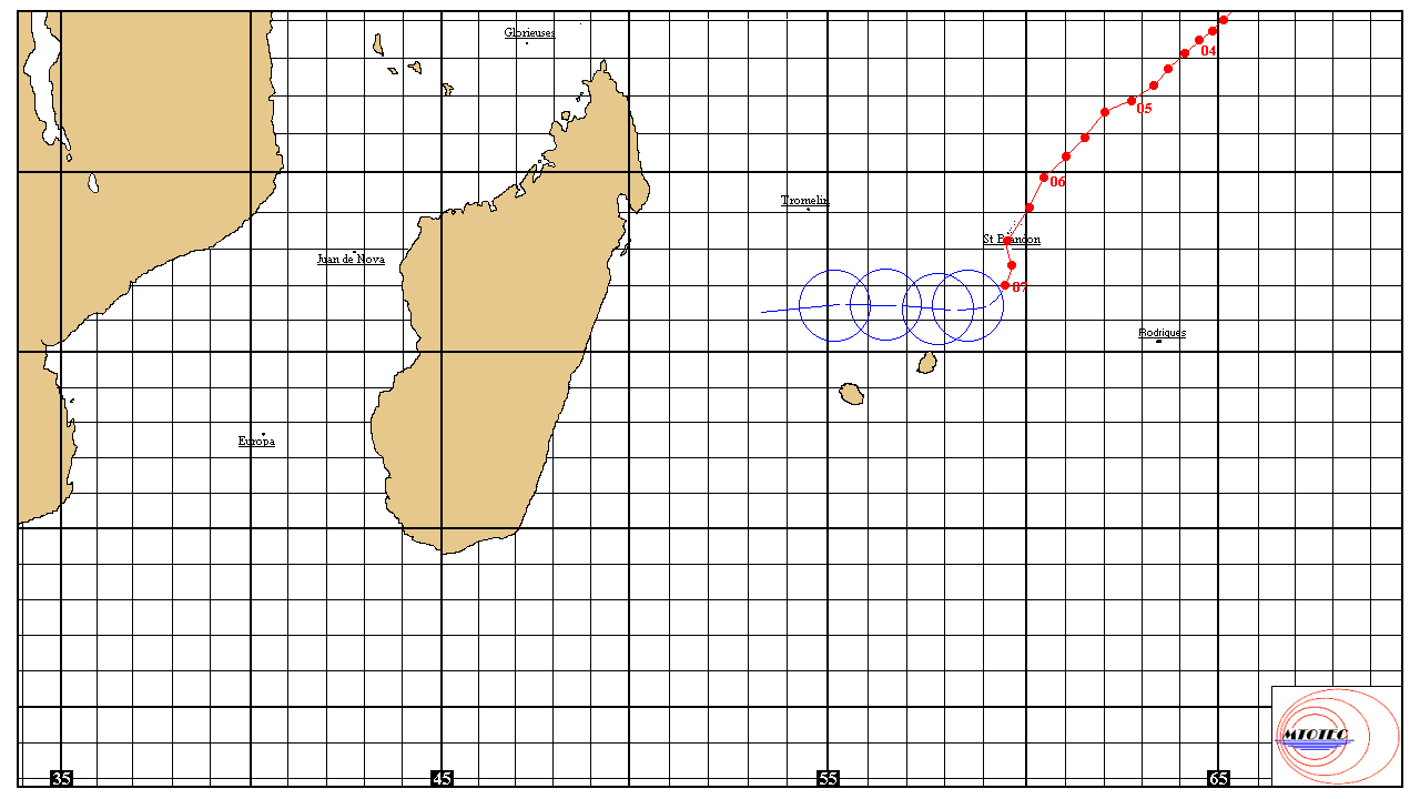 – Position (09h UTC) : 19,6° Sud – 49,6° Est