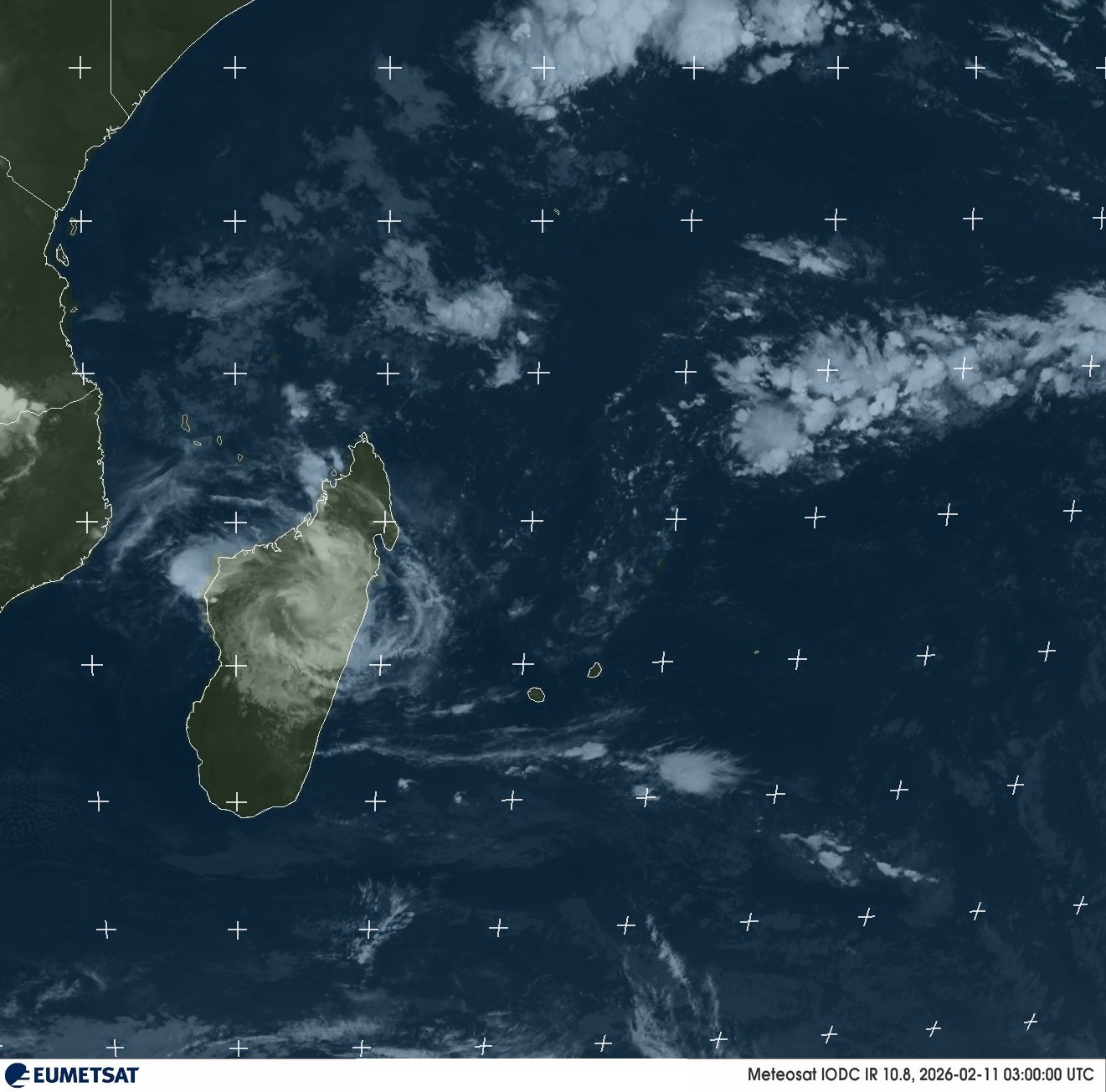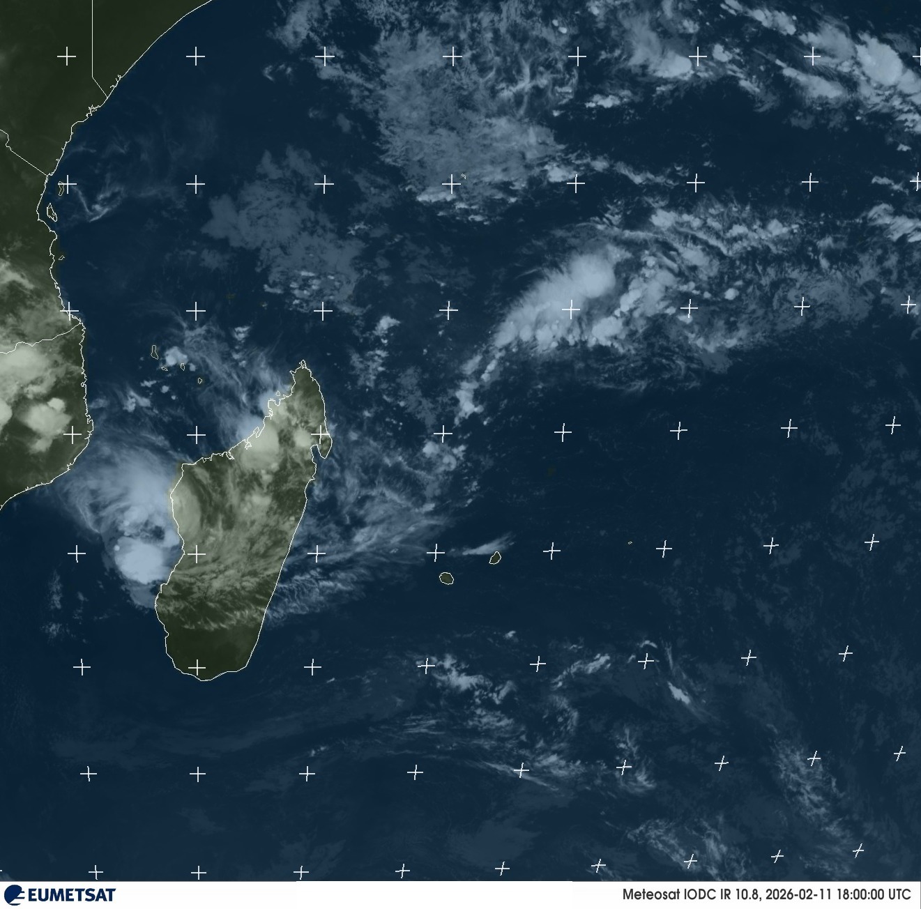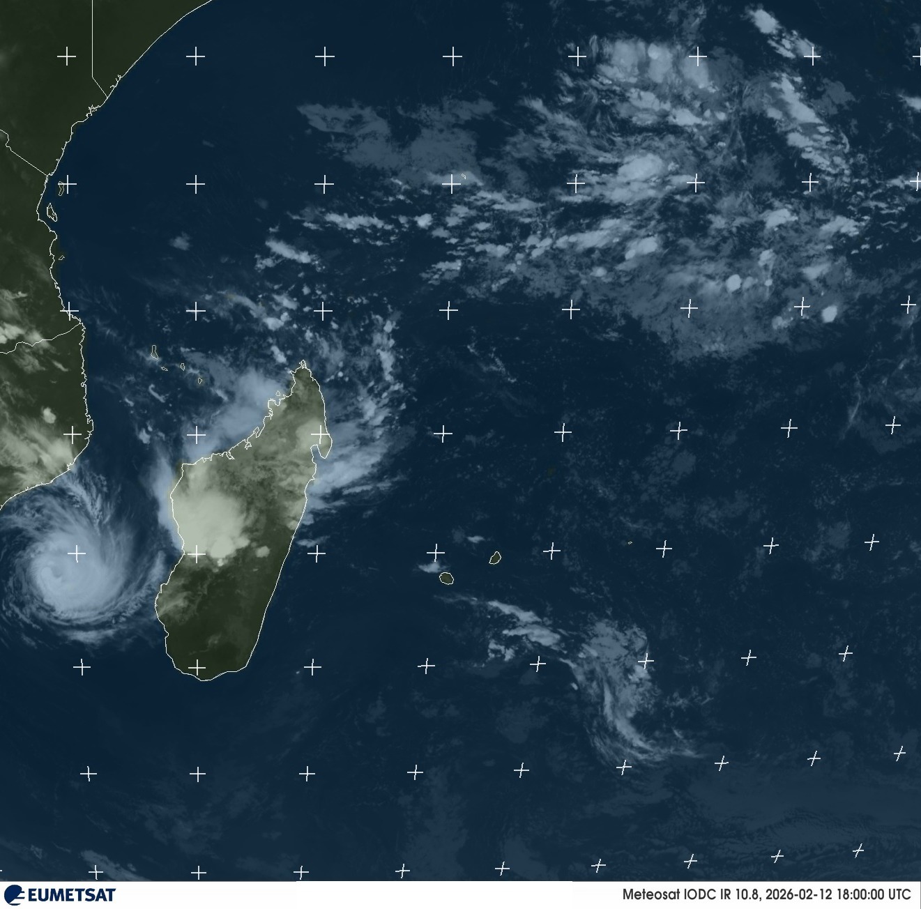 Position (12/02/2026 – 18:00 UTC) : ~20° 8 S – 39° 0 E, soit dans le Canal du Mozambique, à l’ouest de Madagascar